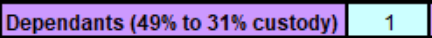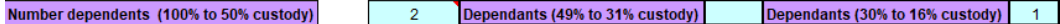 2. Number of dependents: Enter the number of children into the relevant custody care percentage box. In this case, custody care is 60%. Enter 1 child in Number dependents (100% to 50% custody) as below.